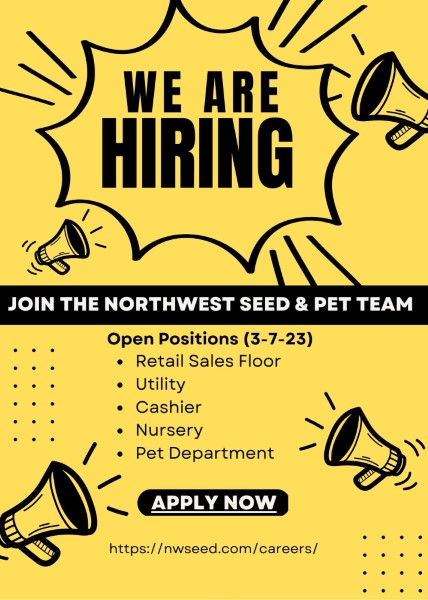 As the seasons change, so does our inventory… as soon as it’s safe to plant outdoors, you’ll find it at Northwest Seed & Pet. In the spring, you will find a kaleidoscope of nursery items. From fruit trees to berries; grapes to tomatoes; perennial and annual flowers for sun and shade; garlic bulbs to seeds and planting trays. From spring and fall bults to dormant sprays, we have it all. Stop in and explore—you’ll be impressed! Our gardening experts are available to answer all of your questions.